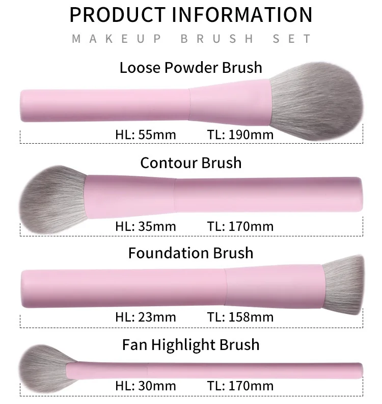 Pink Makeup Brush Set Private Label Wholesale Bulk Cosmetic Synthetic Hair Vegan